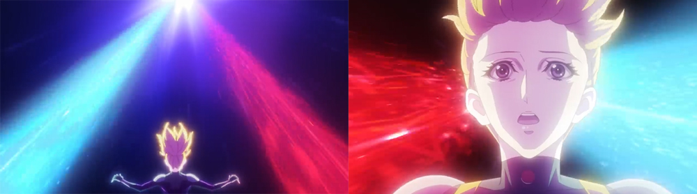 つまり、青い奔流は波動砲、赤い奔流はデスラー砲であり、この2種類の波動砲を時空結節点に同時に命中させることで、次元を越える道が開かれるのではないでしょうか?